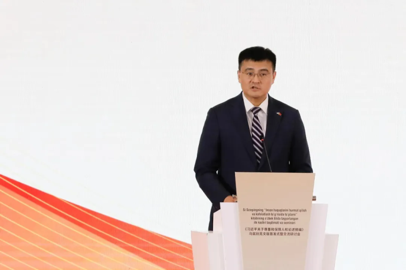 蒋建国在致辞中表示,《习近平关于尊重和保障人权论述摘编》是一部凝聚深厚人民情怀、蕴含丰富治理智慧、关怀全球人权治理的权威著作,贯穿了以人民为中心的人权理念,体现了人民至上的价值取向,平等共享的制度安排以及公平正义的国际担当。该书在乌兹别克斯坦的翻译出版,是中乌在历史相通、现实联通、理念贯通的土壤上进行的一场关于人权的对话与互鉴,希望为乌兹别克斯坦人民观察和感知中国人权打开一扇新的窗口,搭建一座中乌知识界和民众间相互理解的桥梁。