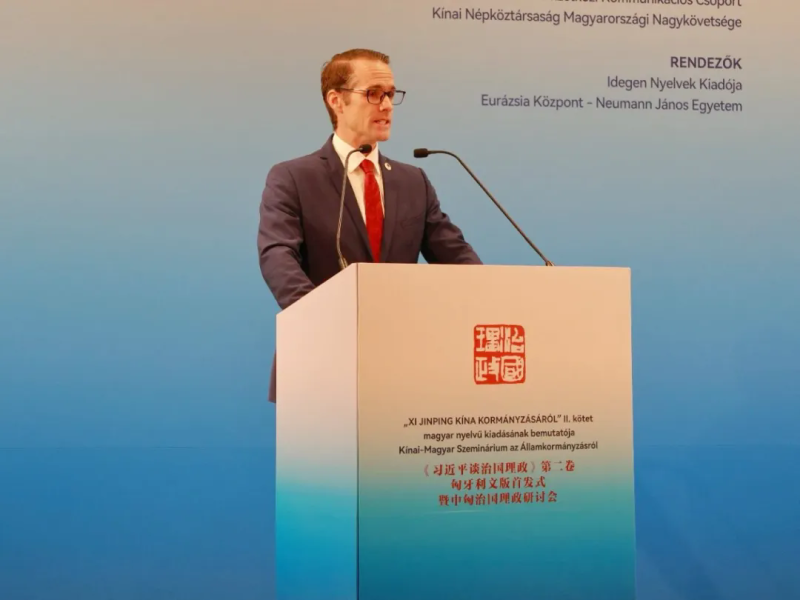龚韬表示,过去的十几年间,中国经济发展逆风而行,展现出强大的韧性与活力。中国成功的答案就蕴藏在《习近平谈治国理政》这部著作中。他强调,中国的发展离不开坚强的领导核心、以人民为中心、坚持独立自主、创新驱动发展和高水平对外开放。相信这部著作第二卷匈牙利文版的发行将为匈牙利读者读懂习近平新时代中国特色社会主义思想、读懂中国共产党、读懂中国打开一扇崭新窗口。