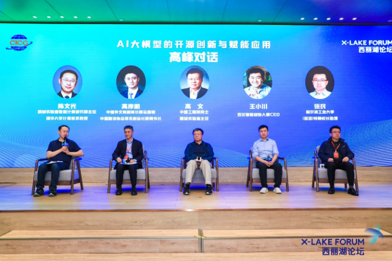 在高峰对话环节,高文、高岸明、王小川、陈文光、张民等嘉宾围绕“AI大模型的开源创新与赋能应用”话题展开讨论。对话嘉宾认为,大模型赛道上的开源和闭源模式各有优劣,值得深入探讨。在大模型技术研发、应用和发展过程中,机遇与挑战并存,政产学研用各方应加强协同联动,汇聚算力资源以及高质量国际传播内容和数据,聚焦场景应用,加强传播和技术领域间的互动交流和合作共建,共同推动技术赋能国际传播能力建设和对外话语体系构建。