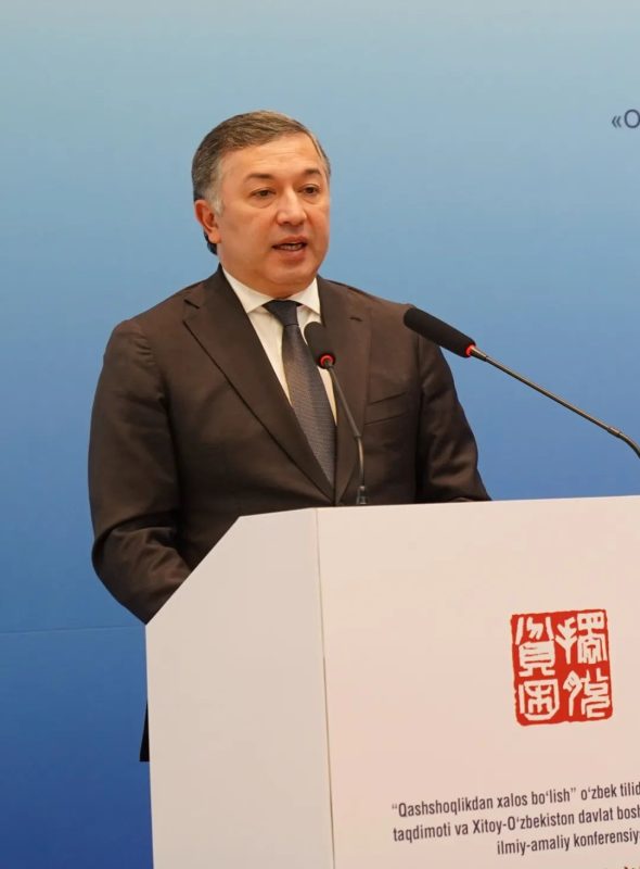 兀卢格别克·伊诺亚托夫在致辞中表示,乌中双方在高质量共建“一带一路”倡议下,建立了良好的贸易关系并开展了伟大的交流与合作,在相互信任的基础上,建立了新时代全面战略伙伴关系,在共同关注的政治、经济、社会发展等方面密切合作。乌兹别克斯坦重视学习中国的减贫经验和成果,并参加了在北京举办的第三届“一带一路”国际合作高峰论坛。乌方将学习借鉴中国的减贫经验,并努力走出适合本国国情的减贫之路。习近平主席关于摆脱贫困的思想和实践非常值得借鉴和学习。