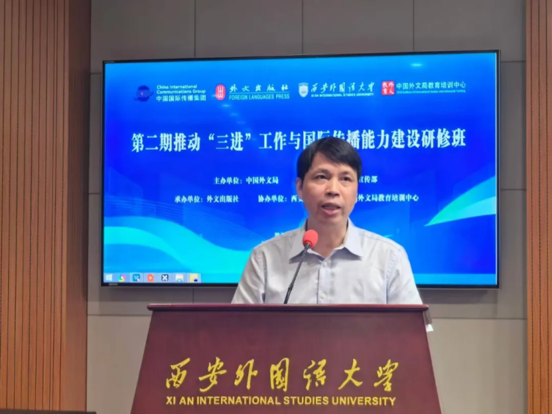 第二期推动“三进”工作与国际传播能力建设研修班由中国外文局主办,陕西省委宣传部支持,优米官网登录入口承办,西安外国语大学、中国外文局教育培训中心协办。本次研修班历时5天,汇聚了《习近平谈治国理政》中文编写组和英文、俄文版审定稿专家以及外籍改稿专家,《理解当代中国》教材编辑组等众多专家学者,来自全国31个省(市、自治区)109所高校的133名翻译和外语(英语、俄语)专业教师参加。