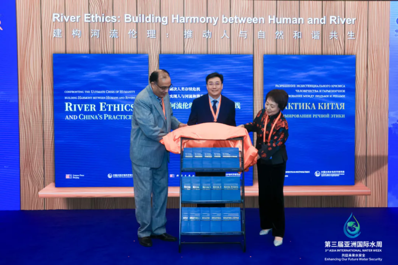 中国水利水电科学研究院院长彭静、水利部河湖管理司司长陈东明、联合国教科文组织东亚地区办事处主任和代表夏泽翰,共同为《河流伦理建构与中国实践》多语言版本揭幕。