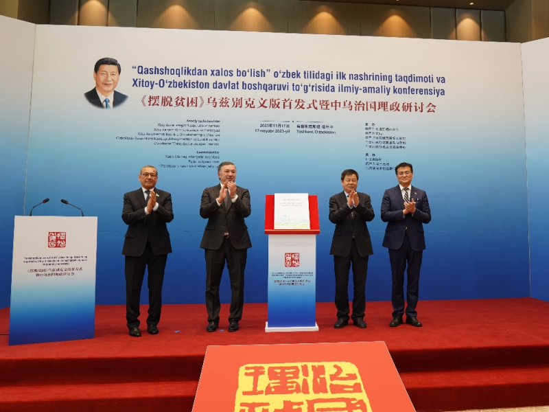 TASHKENT, Nov. 17 (Xinhua) -- The Uzbek edition of Chinese President Xi Jinping’s book on poverty relief, Up and Out of Poverty, was launched in Uzbekistan’s capital, Tashkent, on Friday, and a following seminar was held. The event was jointly organized by China’s State Council Information Office, China International Communications Group, the Chinese Embassy in Uzbekistan, the Uzbekistan Ministry of Employment and Poverty Reduction, and the Development Strategy Center, an NGO in Uzbekistan, and held by Foreign Languages Press, Fujian People’s Publishing House, and Uzbekistan’s Publishing and Printing Press. More than 150 dignitaries, media representatives, think tank members, and other representatives from China and Uzbekistan attended the launch ceremony and the following seminar.