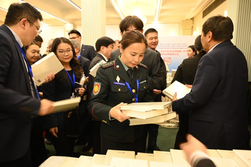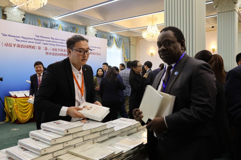 12月2日在蒙古国首都乌兰巴托举行的《习近平谈治国理政》第二卷、《习近平扶贫论述摘编》西里尔蒙古文版首发式暨中蒙治国理政研讨会上,外方嘉宾通过思想与智慧的碰撞,用对话交流探索他们眼中的中国治国理政。活动同样得到蒙古国读者的热情关注,现场纷纷踊跃取阅新书。