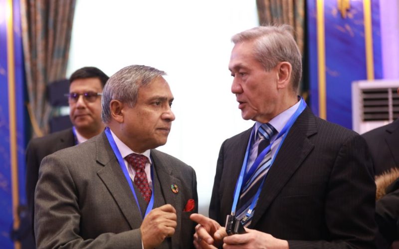 ▲联合国驻蒙古国协调员 塔潘·米什拉(左) 蒙古国前总统恩赫巴亚尔(右)