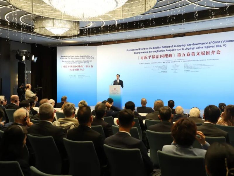 当地时间10月14日,《习近平谈治国理政》第五卷英文版推介会在德国法兰克福举办。中国驻德国大使邓洪波,中国外文局副局长余应…
