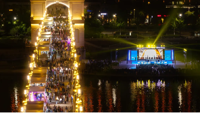 ▲爱阅之城,青田景云大桥上人头攒动的书香集市