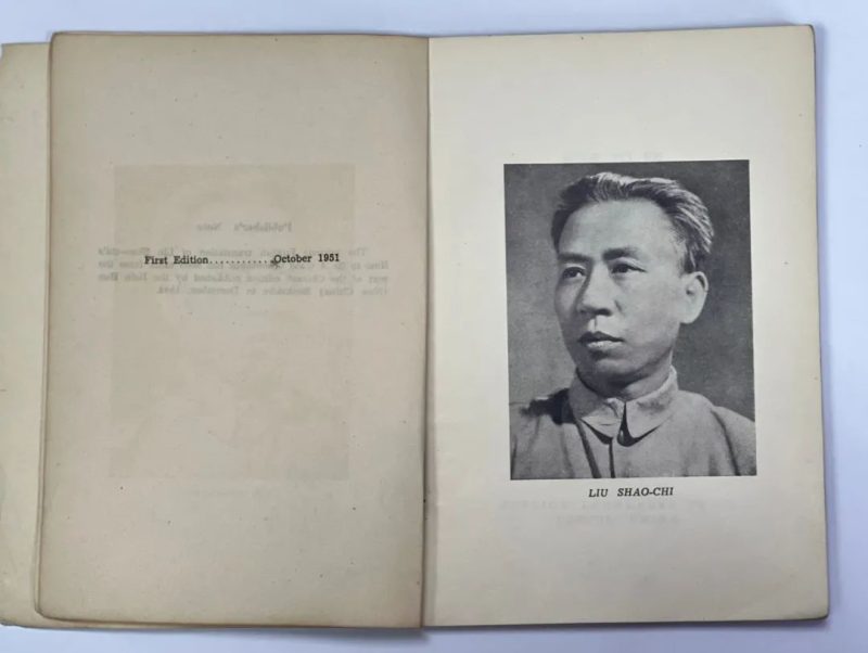 ▲这是1951年10月出版的《论共产党员的修养》英文版第一版的内页
