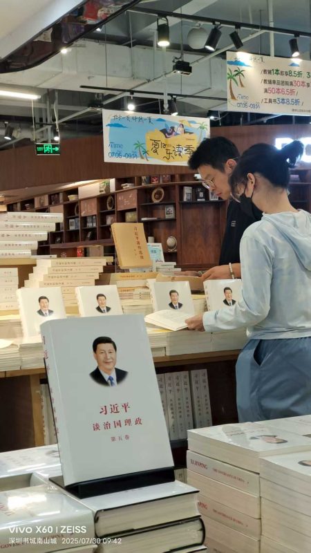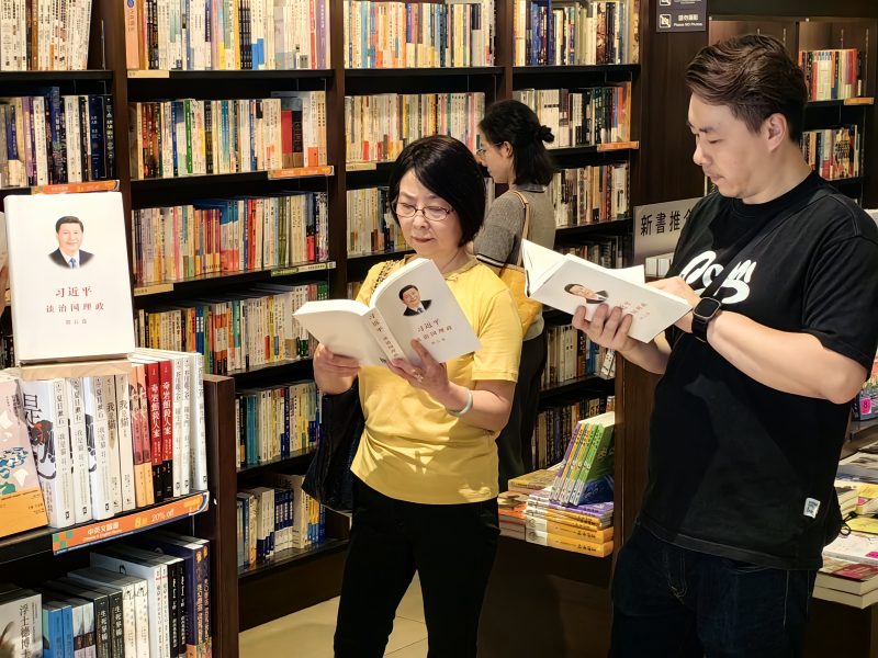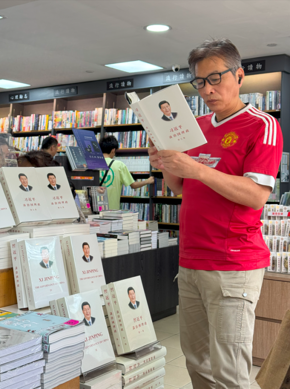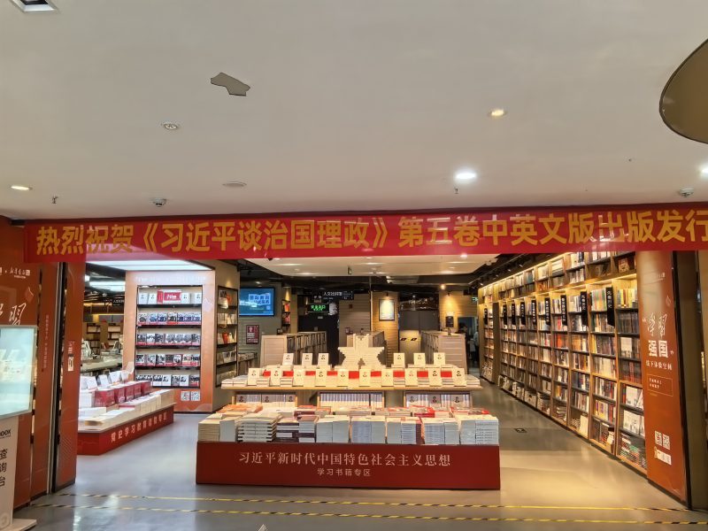 以下为《习近平谈治国理政》第五卷中英文版图书在北京、广东、浙江、福建、四川、西藏、香港、澳门主要书店上架销售及读者阅读的场面。