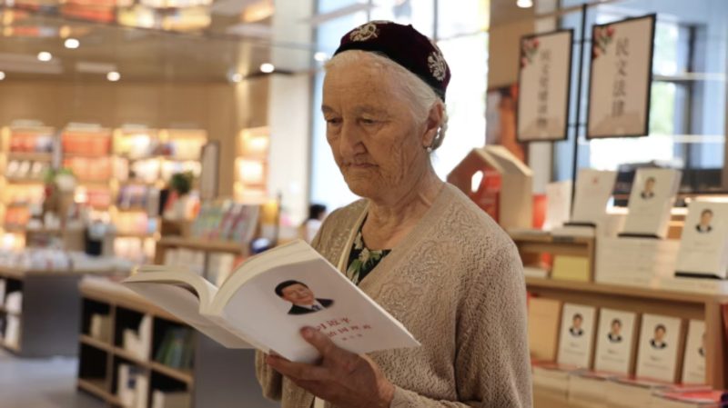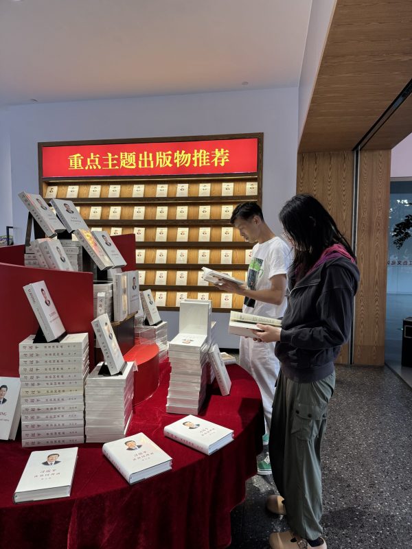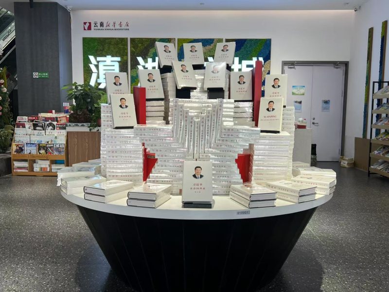 以下为《习近平谈治国理政》第五卷中英文版图书在湖南、海南、上海、天津、重庆、山东、广西、云南、新疆主要书店上架销售及读者阅读的场面。