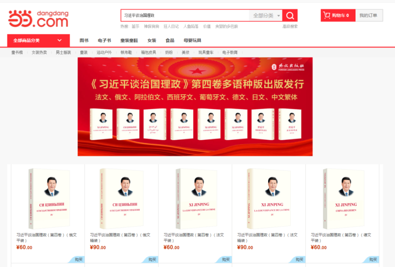 6月11日正式出版发布后,《习近平谈治国理政》第四卷多语种版已在全国各大中心书城和网站上架销售,以下为各地主要书城和网站重点销售展陈的场面。