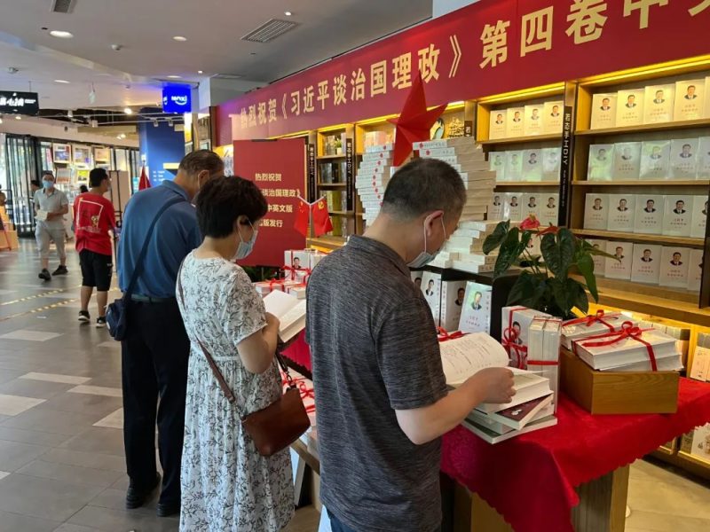 以下为《习近平谈治国理政》第四卷中英文版图书在浙江、江苏、安徽、福建、江西、山东主要书店上架销售及读者阅读的场面。