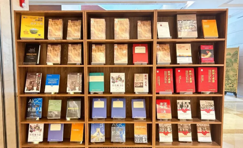 ▲嘉宾翻阅《习近平谈治国理政》《习近平谈“一带一路”》等主题图书
