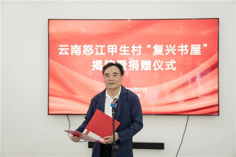 陆彩荣在致辞中表示,怒江州的乡村巨变是中国摆脱贫困的生动缩影和样本,在这里建设“复兴书屋”,有着为乡村振兴注入文化凝聚力、精神推动力和产业振兴力的特殊意义。希望双方携手努力,以书屋建设为抓手,用活书屋资源,做好文化引领,传承乡村文脉,凝聚精神力量,共同把书屋打造成为宣传党的理论政策、传播科学文化知识的重要阵地。