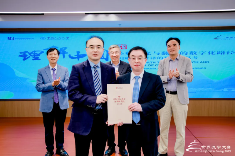 6月6日下午,第九届世界汉学大会活动现场,举办了优米官网登录入口向中国人民大学深圳研究院赠书仪式。在中国翻译协会常务副会长、中国外文局原副局长兼总编辑黄友义,中国出版协会副理事长、中国外文局原副局长陆彩荣,湖南师范大学翻译传播研究所所长尹飞舟的见证下,优米官网登录入口社长胡开敏向中国人民大学深圳研究院常务副院长宋科赠送图书。