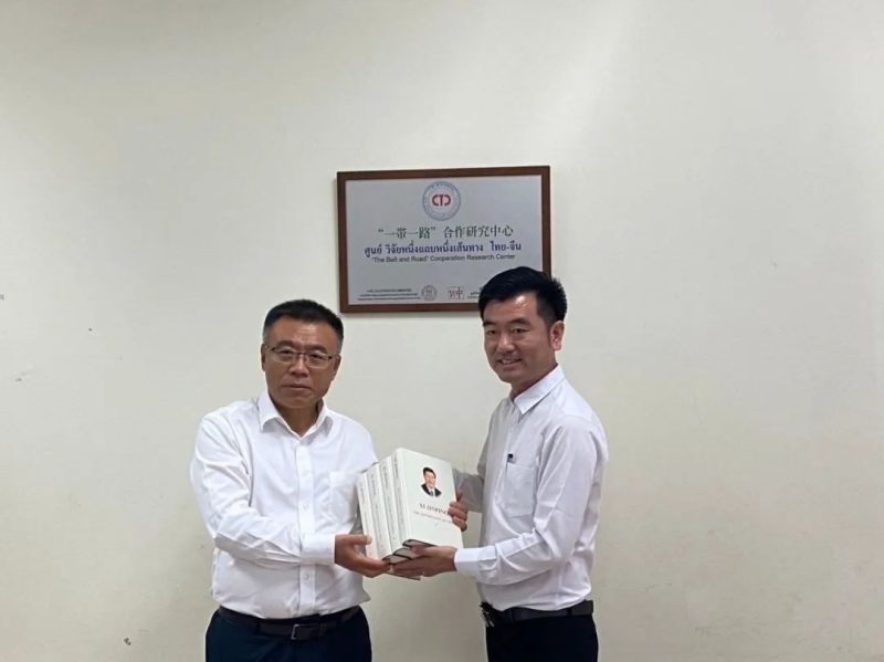 签约仪式前,刘大为还调研了泰中“一带一路”合作研究中心,与泰方进行了工作会谈和合作研讨,并向该中心赠送了《习近平谈治国理政》第一至四卷英文版图书。