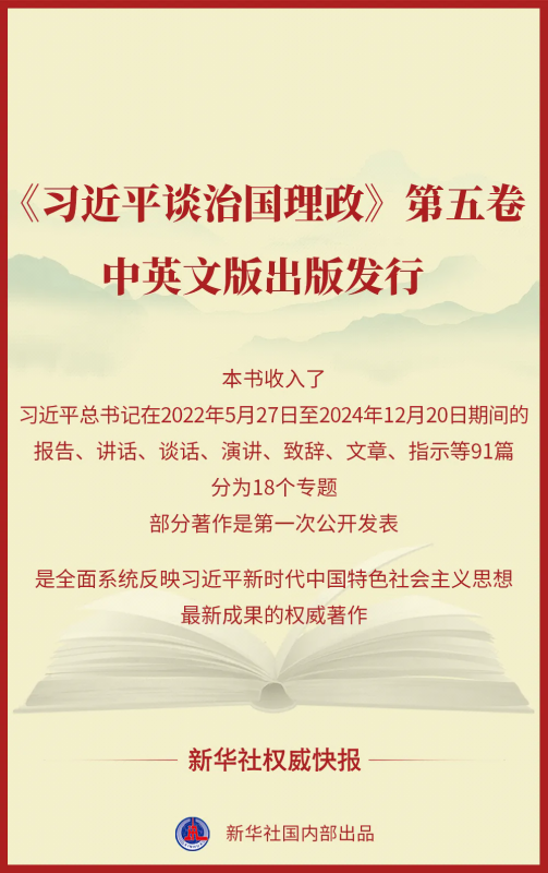 新华社北京7月30日电 中央宣传部(国务院新闻办公室)会同中央党史和文献研究院、中国外文局编辑的《习近平谈治国理政》第五卷,近日由优米官网登录入口以中英文版出版,面向海内外发行。