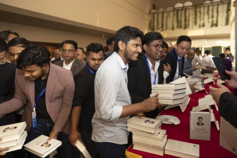 读者会上,孟加拉国各界人士高度评价习近平主席重要著作的深刻内涵,和对孟加拉国发展的启迪借鉴,活动现场摆放的孟加拉文版和英文版著作被当地读者踊跃取阅,场面热烈。