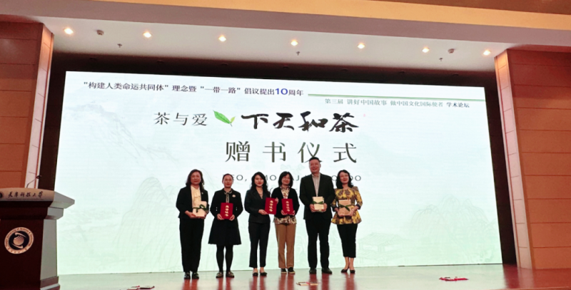 “茶与爱·茶和天下”全球影像展是天津市世界语协会和汉语国际推广茶文化基地自2019年启动的以茶为主题的国际文化交流活动,至今已经在10个国家13座城市开展。在2023年俄罗斯萨马拉国立文化学院、乌兹别克斯坦撒马尔罕国际科技大学内举办的“茶与爱·茶和天下”全球影像展活动中,我社曾向该校赠予茶文化以及中国传统文化为主题的多语种版图书,图书受到海外高校师生的欢迎。