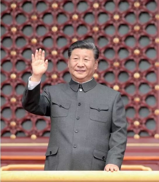 2019 年 10 月 1 日,庆祝中华人民共和国成立 70 周年大会在北京天安门广场隆重举行。习近平发表重要讲话并检阅受阅部队。这是习近平在天安门城楼上。