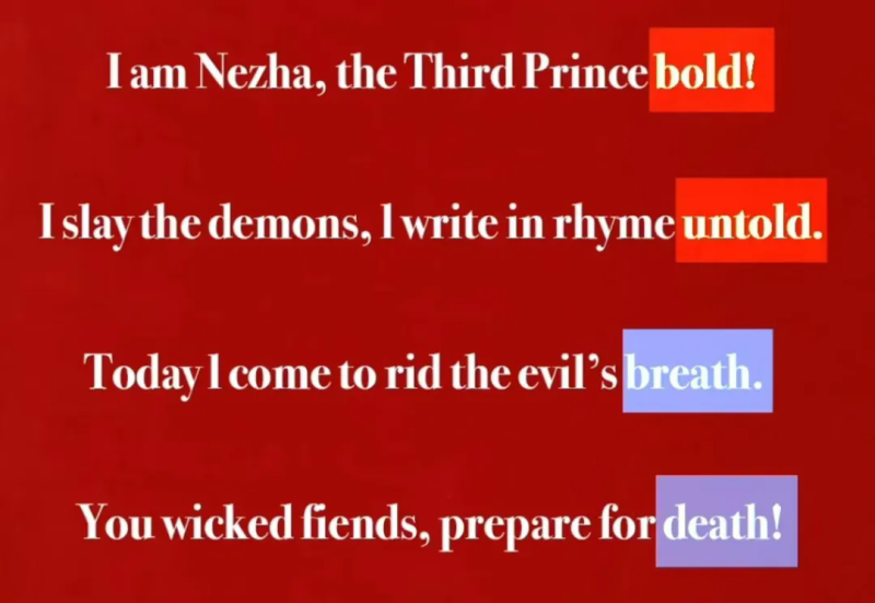 哪吒打油诗用的是五步抑扬格+英雄双韵体翻译。中国翻译协会副会长王晓辉表示,这里的翻译用到了五步抑扬格,所谓五步也叫5个meter(音步),或者是5个foot(音步)。