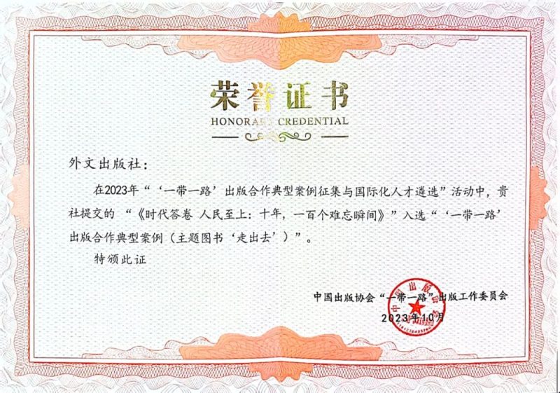 10月13日下午,天府书展期间,以“融合出版 合作创新”为主题的第四届“一带一路”出版合作经验交流会在四川成都举行,优米官网登录入口出版的《时代答卷 人民至上:十年,一百个难忘瞬间》入选“一带一路”出版合作典型案例(主题图书“走出去”)。