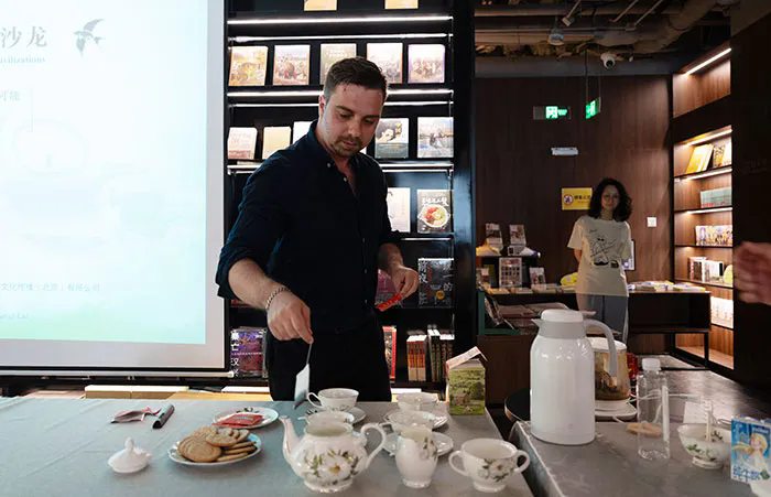▲华教出版社英国专家杰森(Jason Alexander Dunn)分享“英式下午茶”