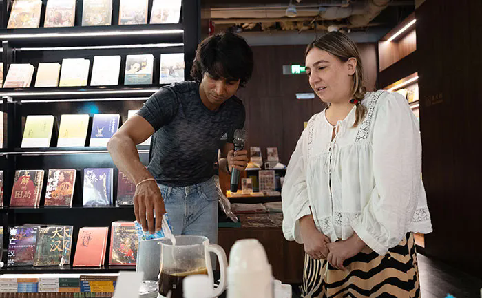 ▲印度专家德伟(Devinder Kumar)现场制作印度传统阿萨姆奶茶