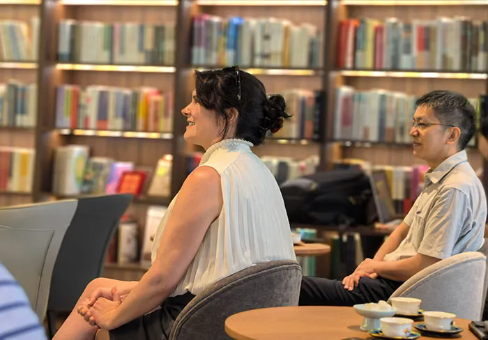 华语教学出版社俄罗斯专家伊琳娜(Irina Makarova)朗诵了她创作的茶主题诗歌,意大利籍专家阿莱西娅(Alessia Raisi)献唱主题歌曲。在阵阵茶香品茗之间,与会外籍专家就茶文化主题积极互动探讨,精彩的分享不仅让到场嘉宾领略到茶文化的博大精深,更彰显了世界文明因交流而多彩、因互鉴而丰富的深刻内涵,生动诠释“和而不同”的理念,搭建起“促进文明对话、共建美好世界”的桥梁。