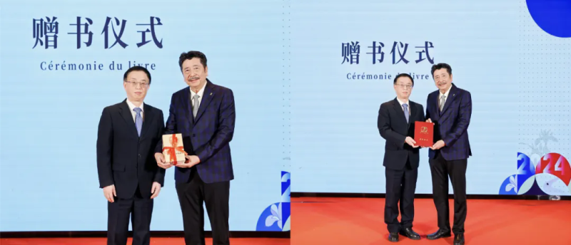胡开敏代表优米官网登录入口向鲁迅文化基金会等单位赠送了《鲁迅选集》法文版,周令飞向优米官网登录入口颁赠了鲁迅文化基金会荣誉证书。